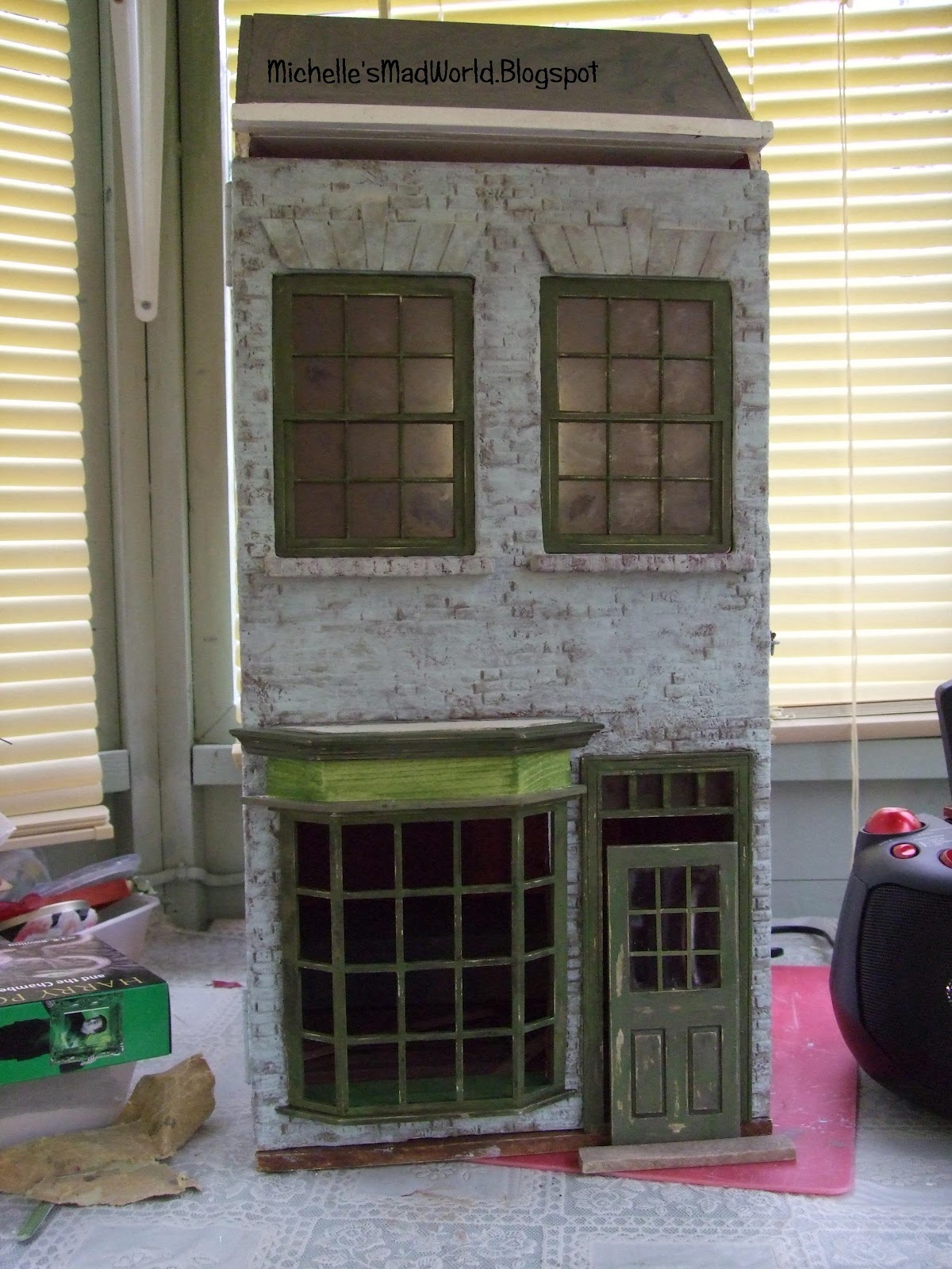 The outside is more done than not now. Tonight I glued in the door and I can fit the main shop window over the weekend. I will add the bit where the sign will go when I’ve made it. I will also add a lead roof to the bay window as I will all the bay/bowed windows I have.